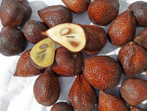 تُعرف هذه الفاكهة أيضًا باسم فاكهة الثعبان، وتعتبر غريبة بسبب مظهرها الخارجي البني القاسي وداخلها الأبيض الحلو المنعش الذي يشبه طعم الأناناس الممزوج بعصير الليمون. السلاك هي فاكهة تنمو على شجرة النخيل، وهي معروفة بجلدها المتقشر الذي يشبه جلد الثعبان. الثمرة على شكل كمثرى وتنمو في مجموعات عند قاعدة النخلة وقوام الثمرة يشبه قوام التفاحة. السلاك غني جدًا بمضادات الأكسدة ويحتوي على فيتامينات C وA والبوتاسيوم والحديد والألياف. بفضل هذه الخصائص، غالبًا ما يستخدم السالك في الطب التقليدي لعلاج مجموعة متنوعة من الأمراض مثل الإسهال والحمى وارتفاع ضغط الدم.