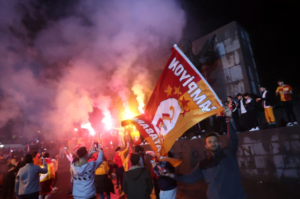 بعد بطولة غلطة سراي ، نزل المشجعون ذوو اللون الأصفر والأحمر إلى الشوارع