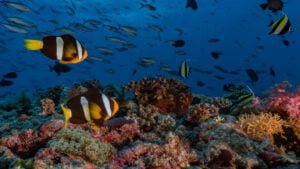 كما أن محيطات الكوكب وموائله مهددة أيضًا. تشير الأبحاث المنشورة في أبريل 2022 ، بتمويل من الإدارة الوطنية الأمريكية للمحيطات والغلاف الجوي ، إلى أن ما بين 10٪ و 15٪ من الأنواع البحرية معرضة بالفعل لخطر الانقراض.