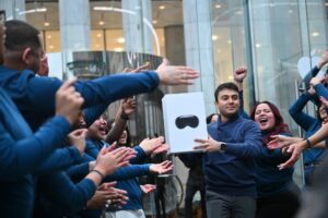 تم طرح سماعة الواقع المختلط للبيع في متاجر Apple في جميع أنحاء البلاد، حيث كان بعض المتسوقين المتحمسين من بين أول من وضعوا أيديهم على ما يعد بأنه أحد أكثر المنتجات التقنية ابتكارًا منذ سنوات.