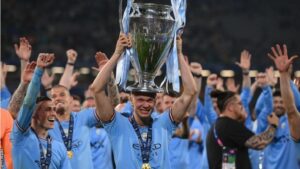 عكست الاحتفالات في صافرة النهاية موسمًا رائعًا حيث حصل السيتي أخيرًا على لقب دوري أبطال أوروبا واستعد لاستعراضه في شوارع مانشستر جنبًا إلى جنب مع الدوري الإنجليزي الممتاز وكأس الاتحاد الإنجليزي يوم الاثنين.